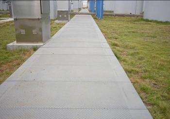 玻璃鋼蓋板是由玻璃鋼格柵和一層玻璃鋼花紋蓋板合成的,蓋板加花紋的防滑性能更強(qiáng),應(yīng)用最多的是在污水廠、發(fā)電站,作為電纜蓋板、走道比較多,如下圖。